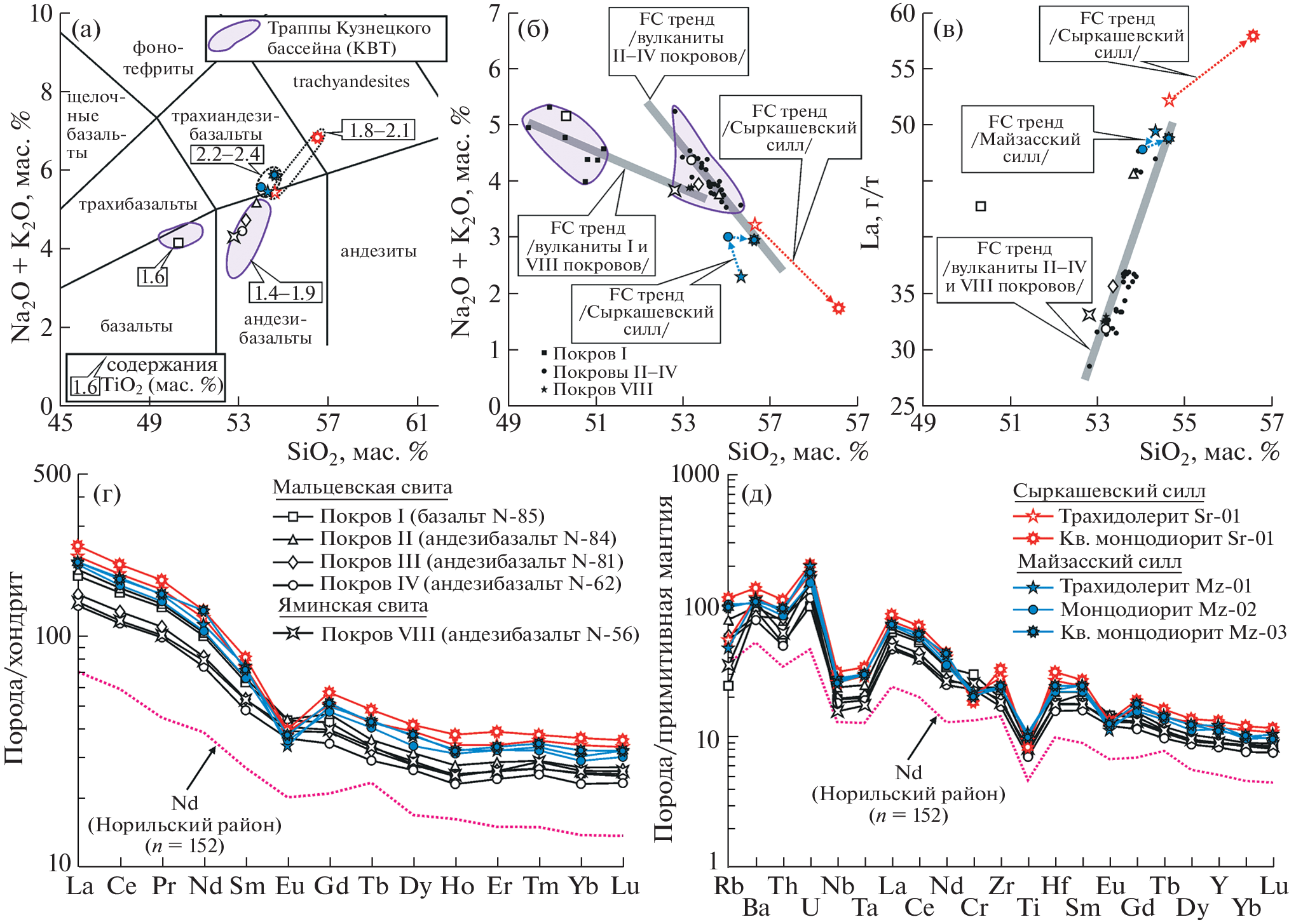 - Svetlitskaya T.V., Nevolko P.A. Late Permian–Early Triassic traps of the Kuznetsk Basin, Russia: Geochemistry and petrogenesis in respect to an extension of the Siberian Large Igneous Province // Gondwana Res. 2016. V. 39. P. 57–76. https://doi.org/10.1016/j.gr.2016.06.014