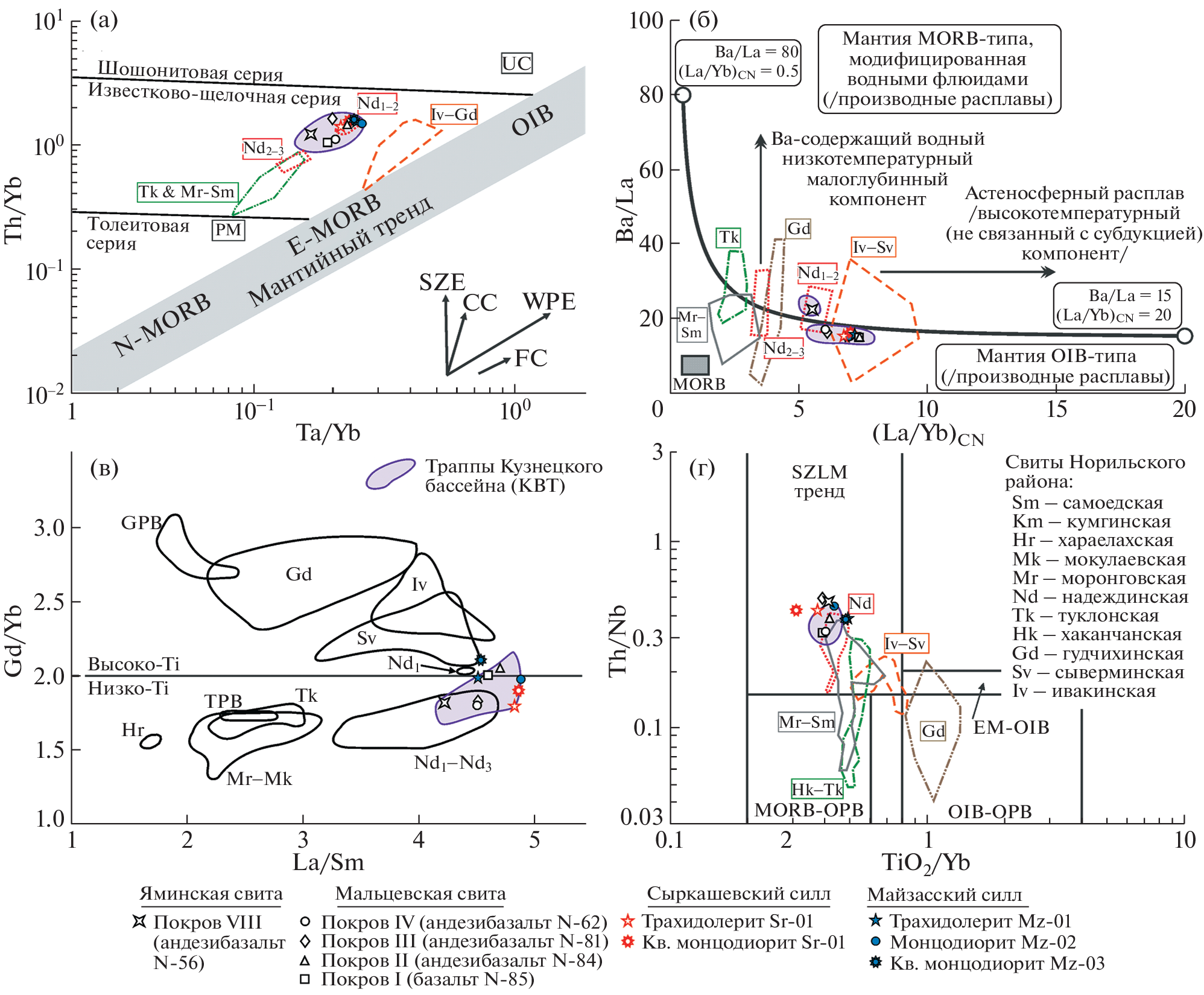 - Sharma M., Basu A.R., Nesterenko G.V. Temporal Sr-, Nd- and Pb-isotopic variations in the Siberian flood basalts: Implications for the plume-source characteristics // Earth Planet. Sci. Lett. 1992. V. 113. № 3. P. 365–381. https://doi.org/10.1016/0012-821x(92)90139-m