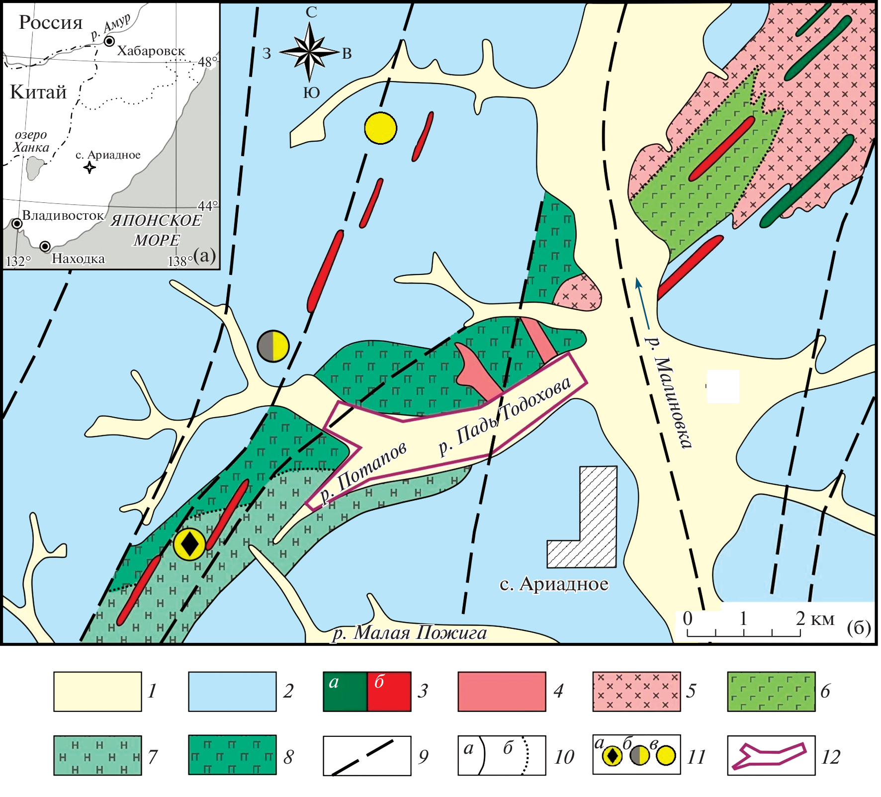 4. Ханчук А.И., Молчанов В.П., Андросов Д.В. Первые находки самородных золота и платины в ильменитовых россыпях Ариадненской интрузии базит-ультрабазитов (Приморье) // ДАН. 2020. Т. 492. № 2. С. 39‒43..https://doi.org/10.31857/S2686739720060079