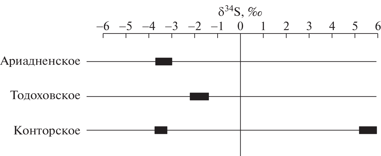 Within the Sikhote-Alin orogenic belt, a new promising type of mineral resources has been identified – complex ores and placers spatially and genetically related to Late Mesozoic ultramafic intrusions. An example of this is the Ariadne massif of ultramafic rocks, in the center of which there is a manifestation of gold-titanium mineralization, and in the exocontact – gold-antimony. The main features of the mineralogy and geochemistry of gold-copper formations in its near-intrusive zone are determined. To reconstruct the conditions for the formation of these ores, the isotopic composition of sulfur in sulfide minerals was studied. The obtained materials testify to the significant metal-bearing potential of the ultramafic rocks of the Sikhote-Alin.
