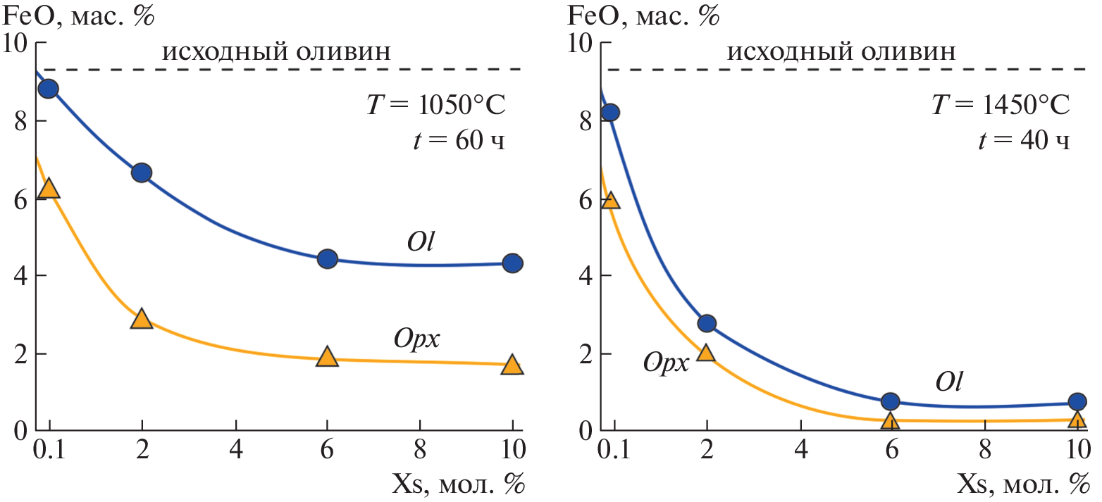 Экспериментальные исследования, направленные на моделирование процессов взаимодействия серосодержащих метасоматических агентов с мантийными силикатами и оценку влияния концентрации серы на сульфидизацию оливина, проведены в системе Fe,Ni-оливин − сера на аппаратуре высокого давления БАРС (1050 и 1450°С, 6.3 ГПа, 40‒60 ч, концентрации серы (Xs) 0.1, 2 и 6 мол. %). Установлено, что в результате перекристаллизации Fe,Ni-оливина в расплаве серы происходит экстракция Fe и Ni из оливина в этот расплав, с последующим образованием Fe,Ni-сульфидов (или сульфидных расплавов) и низкожелезистых, низконикелевых силикатов. Определены ключевые индикаторные характеристики процесса сульфидизации оливина в зависимости от температуры и концентрации серы, включающие характерные фазовые ассоциации, закономерности эволюции химических составов минеральных и расплавных фаз, а также особенности строения кристаллов оливина. Экспериментально установлено, что восстановительные серосодержащие метасоматические агенты даже в минимальных концентрациях и при относительно низких температурах способны растворять и транспортировать мантийные силикаты и сульфиды, а также могут играть важную роль в сульфидном рудообразовании в мантии.