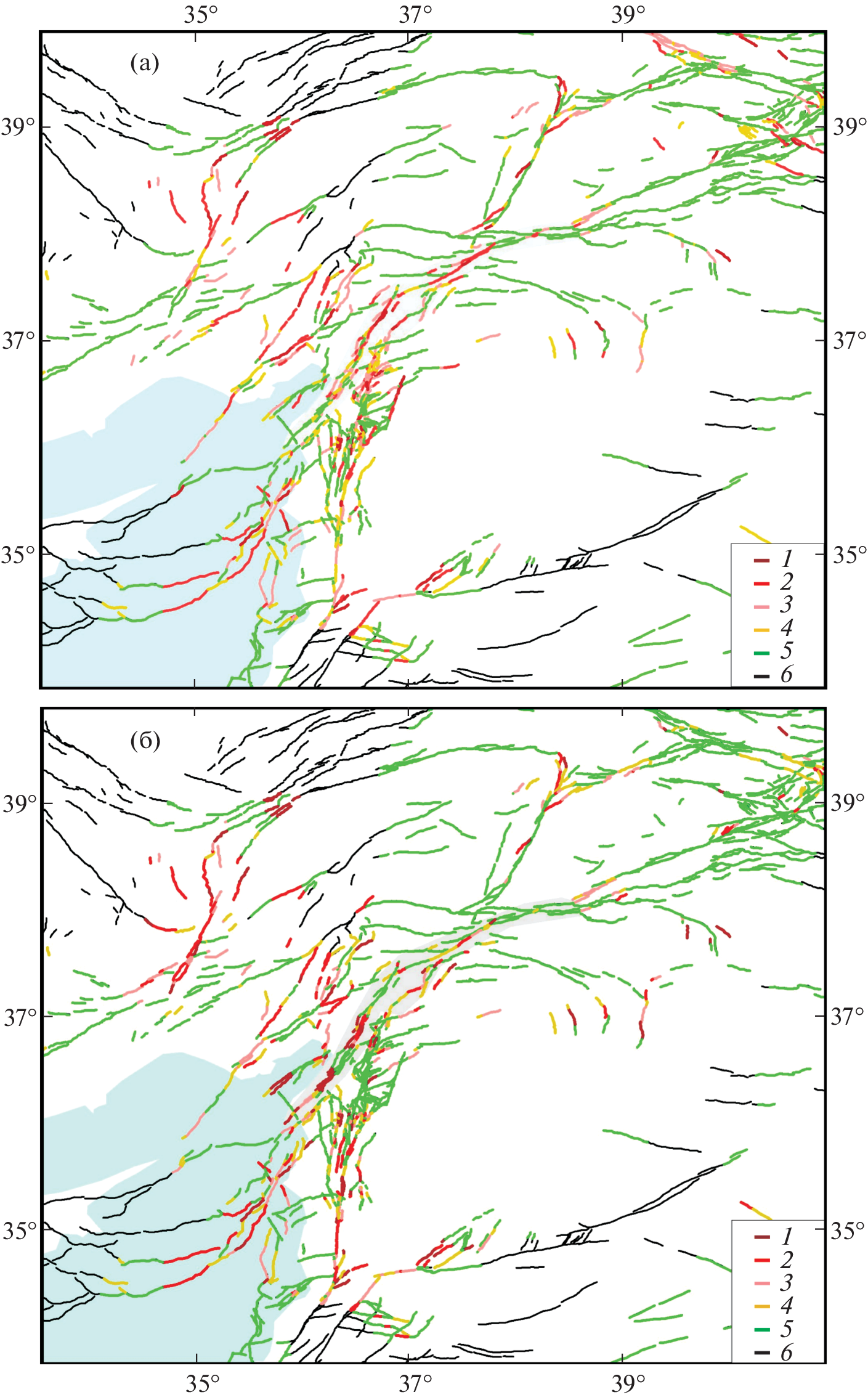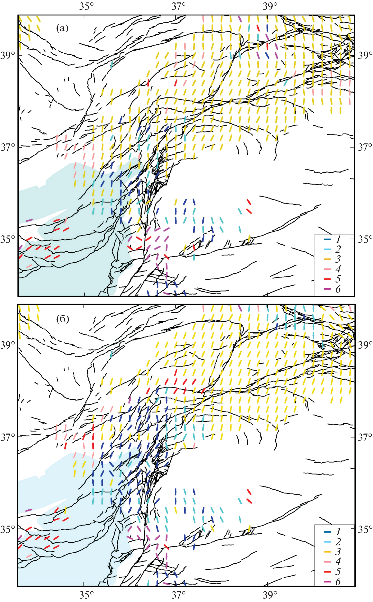 Землетрясения в Турции (провинция Караманмараш) в феврале 2023 г. не укладываются в привычную последовательность: главный толчок – афтершоки. Согласно статистическому закону Бота магнитуда сильнейшего афтершока ожидается на единицу меньше магнитуды главного толчка. Между тем для последовательности толчков в Турции эта разница составляет всего 0.1. В турецких публикациях первое из сильнейших землетрясений называется Пазарджикским (Mw = 7.8), а второе – Эльбистанским (Mw = 7.7). Каждое из этих землетрясений породило свою систему поверхностных разрывов и афтершоковые последовательности, по-разному ориентированные в пространстве. Цель исследования – оценить, обусловлено ли возникновение второго землетрясения полем напряжений, существовавшим ранее, или оно возникло вследствие главного толчка. Если реализован второй сценарий, это значит, что поле напряжений может меняться в окрестности сильного землетрясения почти мгновенно (разница во времени между землетрясениями менее 9 ч).