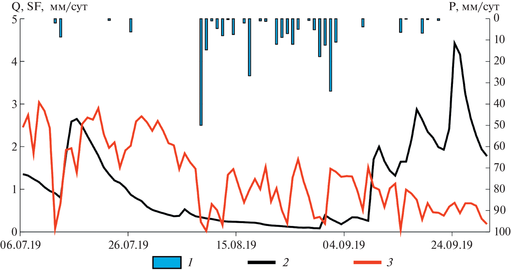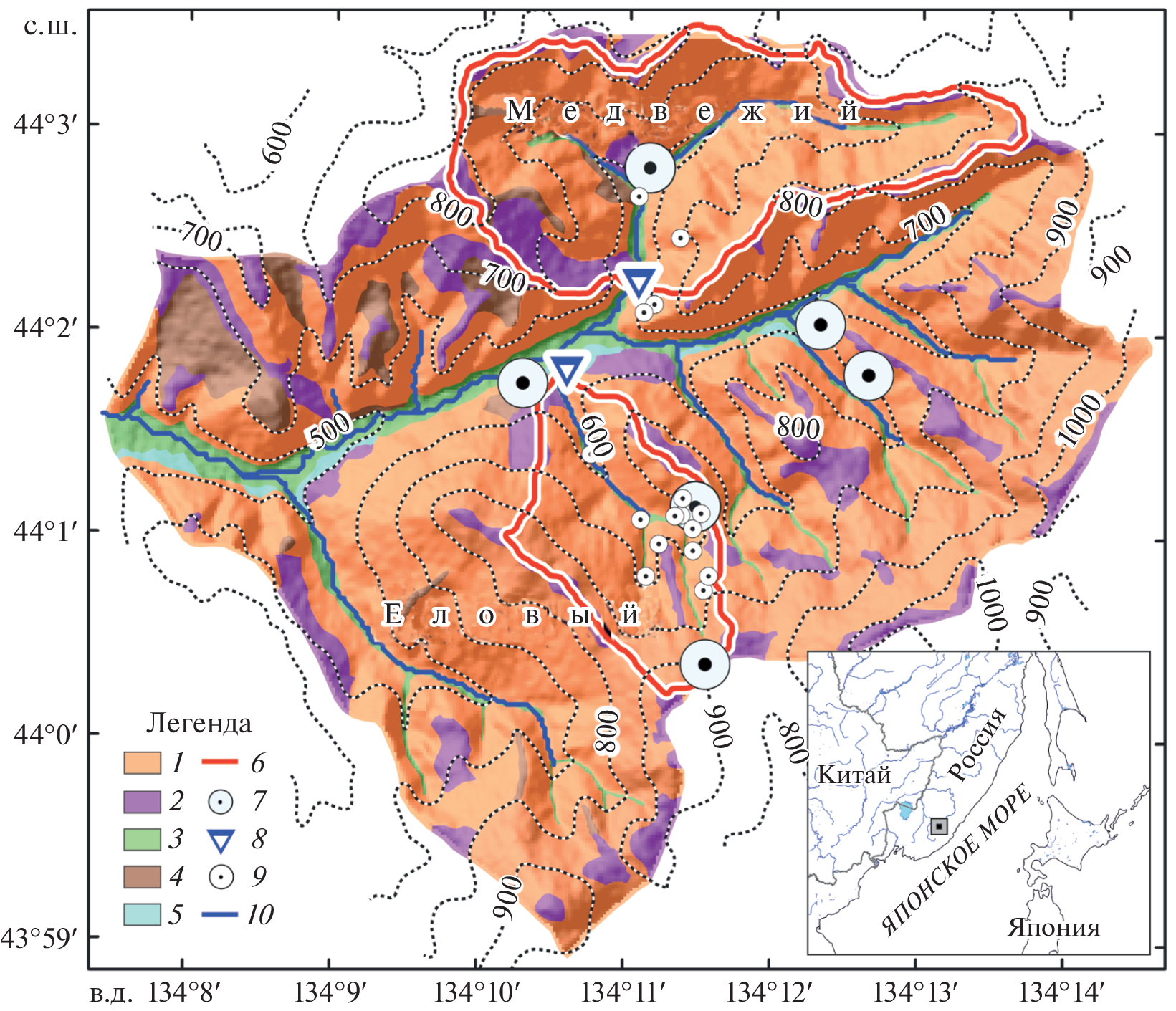 The results of long-term field studies on small watersheds in the upper reaches of the Ussuri River (Primorsky Krai, Russia) are presented. In virtue of modern observation means, a unique dataset was obtained to effectively reflect the complicated processes of runoff formation in small low-mountain river basins. The tools of geochemical and hydrological modeling were jointly used to describe the watersheds’ behavior, and an assessment of the genetic components of the river flow was carried out, that made it possible to deeper research the processes and settings of runoff formation, and to evaluate the factors determining the accuracy of runoff modeling.