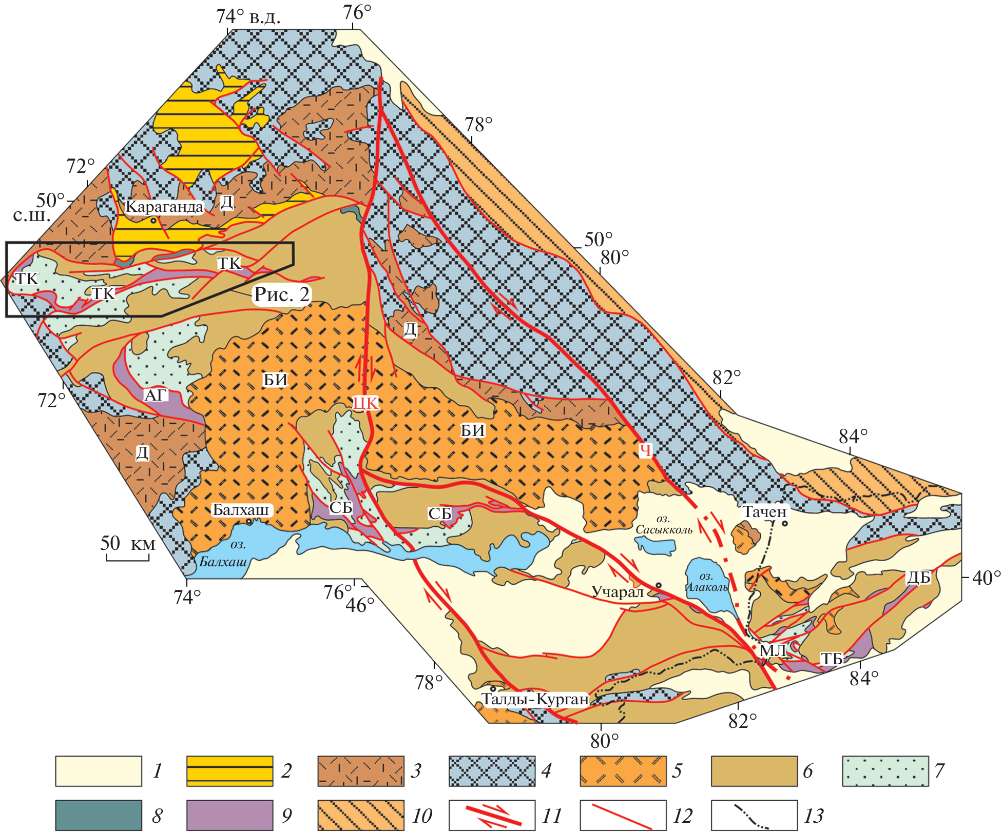 - Degtyarev K.E., Luchitskaya M.V., Tretyakov A.A., Pilitsyna A.V., Yakubchuk A.S. Early Paleozoic suprasubduction complexes of the North-Balkhash ophiolite zone (Central Kazakhstan): geochronology, geochemistry and implications for tectonic evolution of the Junggar-Balkhash Ocean // Lithos. 2021. V. 380–381. № 105818.
