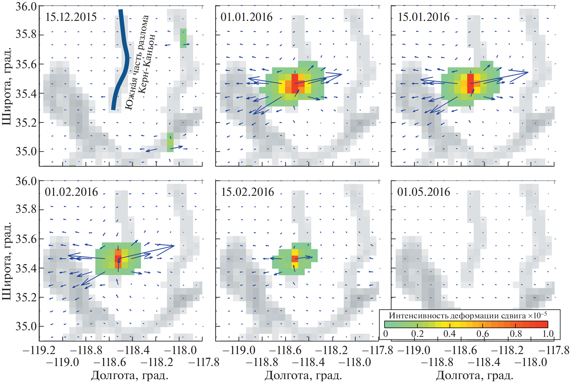 - Klein E., Bock Y., Xu X., Sandwell D.T., Golriz D., Fang P., Su L. Transient deformation in California from two decades of GPS displacements: Implications for a three-dimensional kinematic reference frame // J. Geophys. Res.: Solid Earth. 2019. V. 124. № 12. P. 12189–12223.