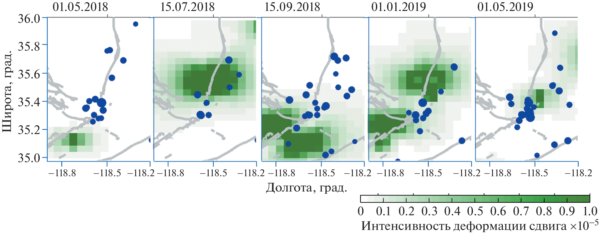 - Bondur V.G., Gokhberg M.B., Garagash I.A., Alekseev D.A. Features of the modelled stress-strain state dynamics prior to the M 7.1 2019 Ridgecrest earthquake in Southern California // Rus. Journ. Earth Sci. 2022. V. 22. P. ES5002.