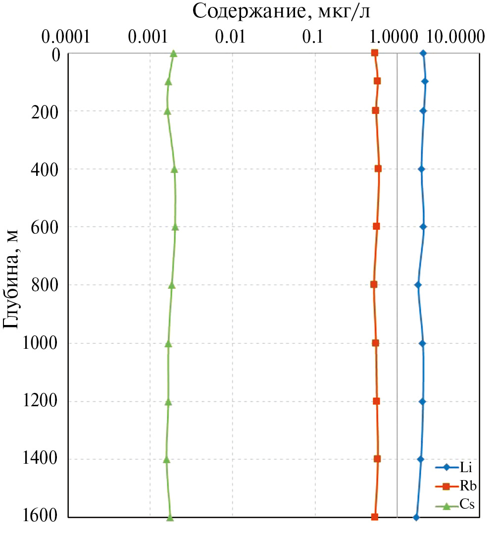 Li, Rb и Cs в байкальской воде имеют более низкие концентрации и, соответственно, вариабельность в глубинной воде не отмечается или очень не значительная.