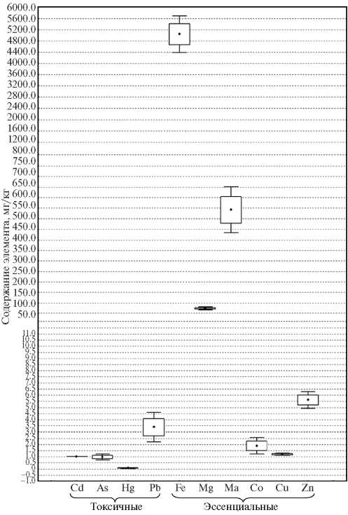 Мышьяк | 1.1 ± 0.5 | <0.1 | 1.0 ± 0.5 | 0.13 ± 0.07 | <0.1 | 1.5 ± 0.7 | 2.5 ± 1.2 | 0.92 ± 0.34 |