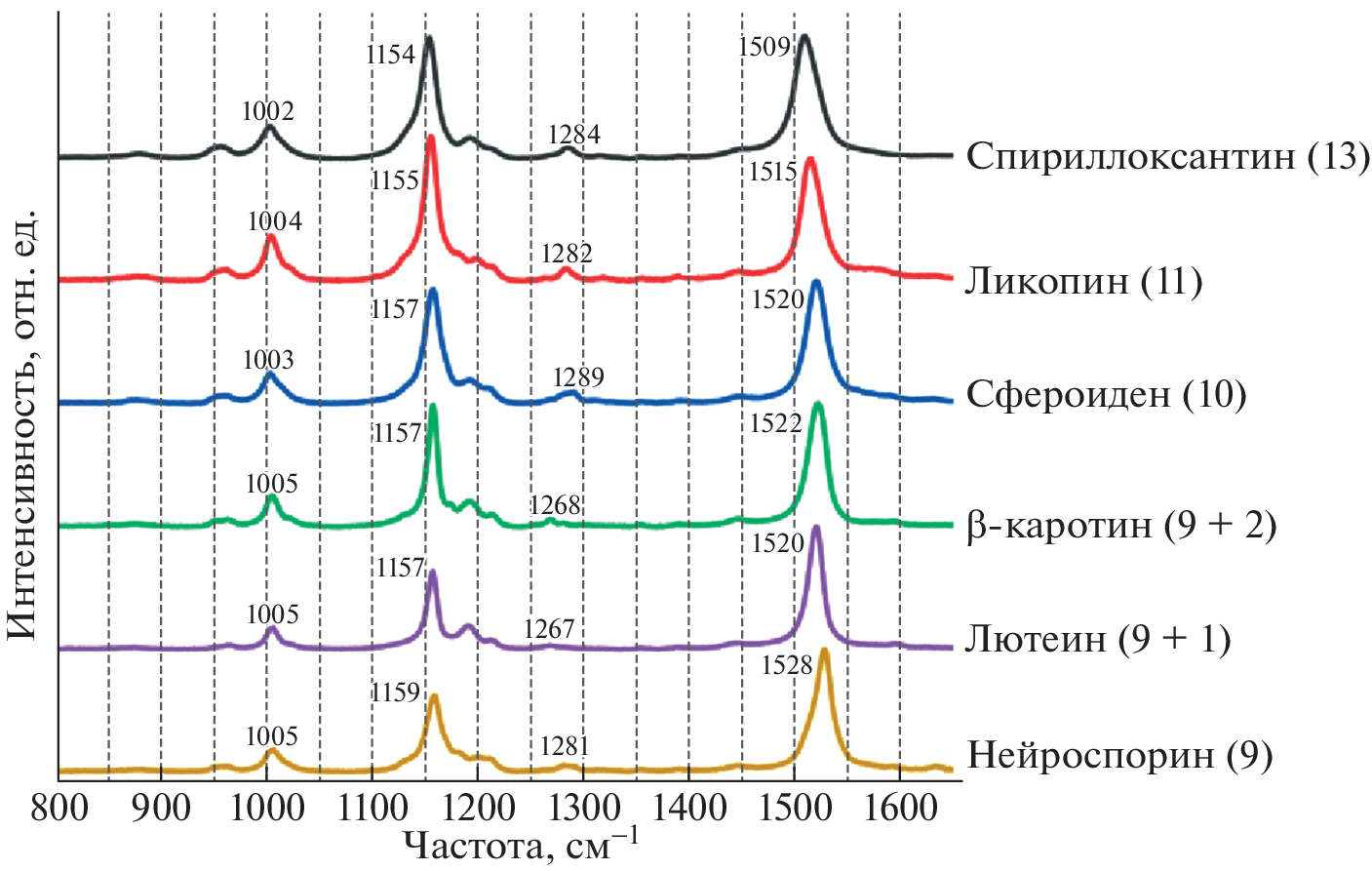 - Saito S., Tasumi M., Eugster C.H. Resonance Raman spectra (5800–40 cm–1) of All-trans and 15-cis isomers of β-carotene in the solid state and in solution. Measurements with various laser lines from ultraviolet to red // J. Raman Spectrosc. 1983. V. 14. № 5. P. 299–309. https://doi.org/10.1002/jrs.1250140503