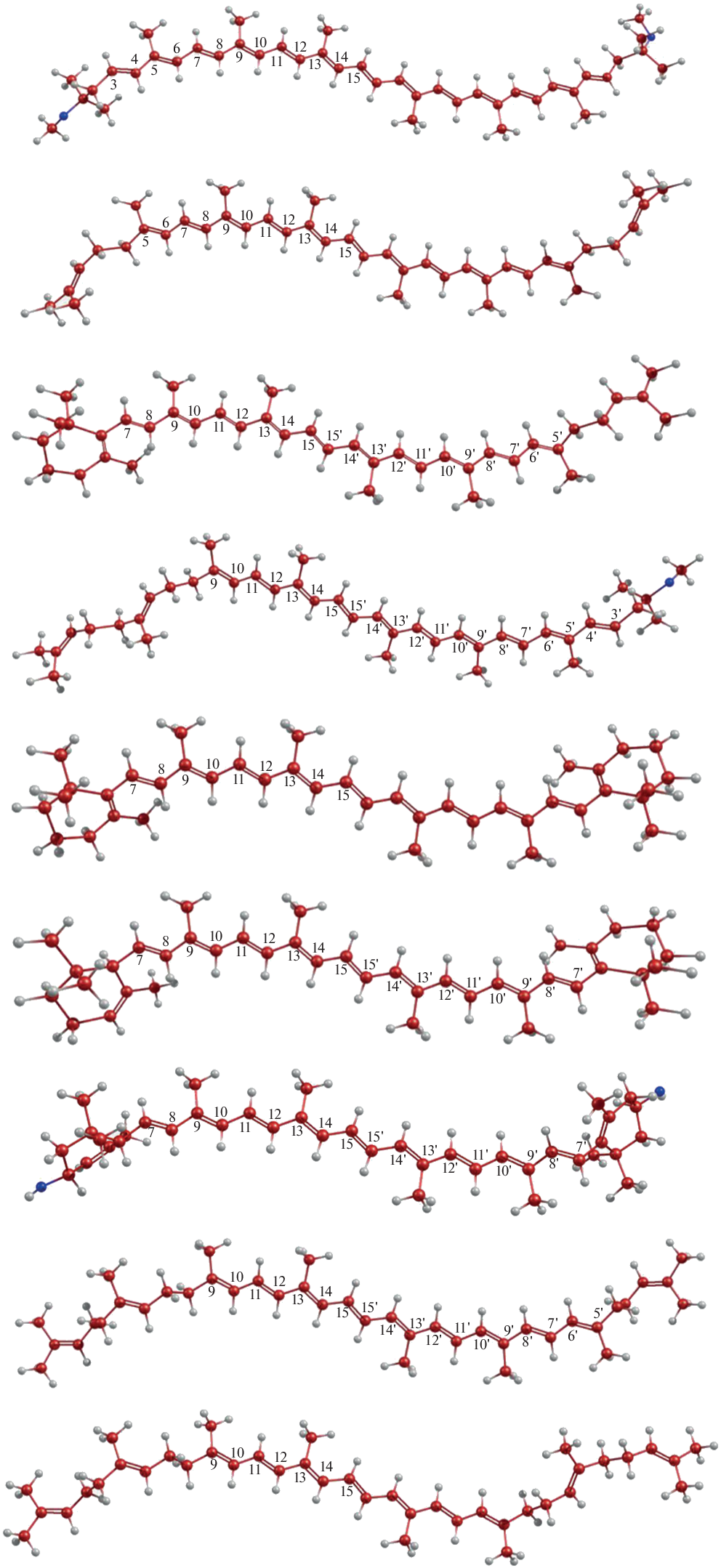 - Guo W.-H.H., Tu C.-Y.Y., Hu C.-H.H. Cis–Trans Isomerizations of β-Carotene and Lycopene: A Theoretical Study // J. Phys. Chem. B. 2008. V. 112. № 38. P. 12158–12167. https://doi.org/10.1021/jp8019705