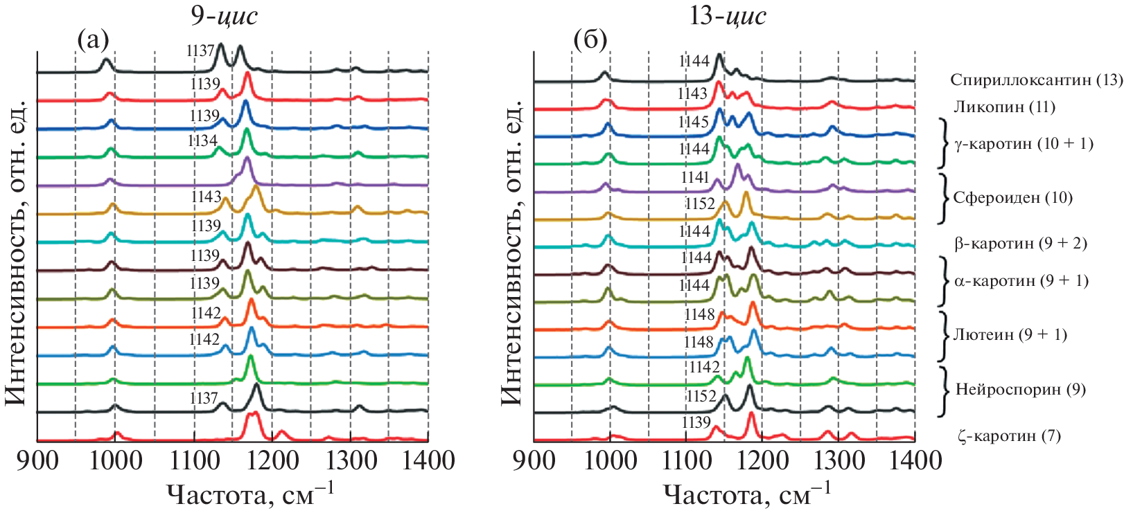 - Koyama Y. et al. Raman and infrared spectra of the all-trans, 7-cis, 9-cis, 13-cis and 15-cis isomers of β-carotene: Key bands distinguishing stretched or terminal-bent configurations form central-bent configurations // J. Raman Spectrosc. 1988. V. 19. № 1. P. 37–49. https://doi.org/10.1002/jrs.1250190107