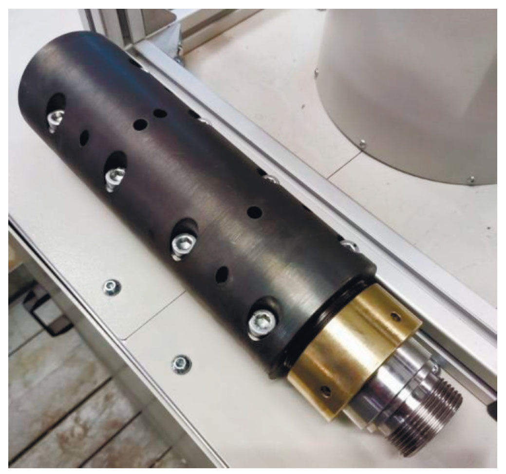 На основе приведенного подхода был разработан и изготовлен аэрогидродинамический узел (АГУ), содержащий сопло Лаваля и цилиндрический канал (рис. 1). АГУ ставится на выходе реактора за клапаном сброса давления и не содержит подвижных элементов.