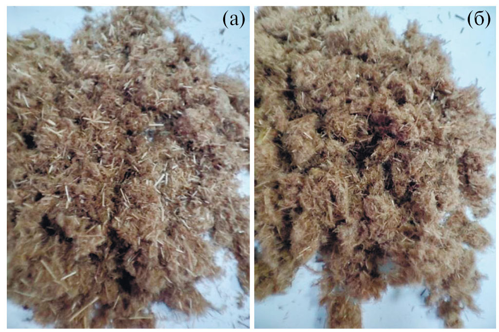 3. Рис. 2. Образцы соломы мискантуса после промывки и сушки: а – обработка без АГУ; б – обработка с АГУ.