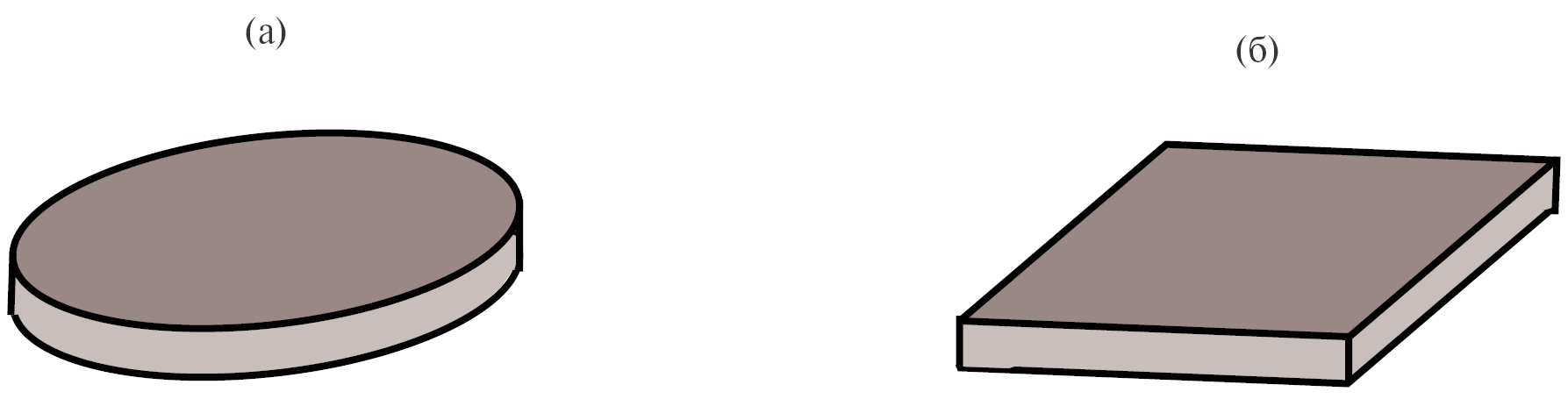 Рис. 1. Круглая (а) и прямоугольная (б) прокладки. Жестко защемленные основания глубоко тонированы.