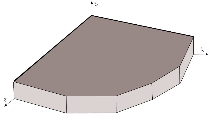 Здесь M — спектральный параметр, Yp = {ξ ∈ ∂Ξ: ξ3 = p}, p = 0, 1, — основания четверти слоя, которые жестко защемлены, но боковая поверхность оставлена свободной (ср. исходные краевые условия (2)). Поскольку левая часть интегрального тождества (10) — положительно определенная, замкнутая в H1(Ξ) и симметричная билинейная форма, задаче о собственных колебаниях четверти слоя Ξ ставится [13, гл. 10, 1] в соответствие положительно определенный самосопряженный неограниченный оператор в гильбертовом пространстве L2(Ξ) .