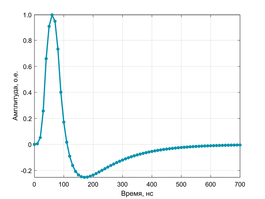 Рис. 5. Импульсная характеристика приемного преобразователя (фрагмент).