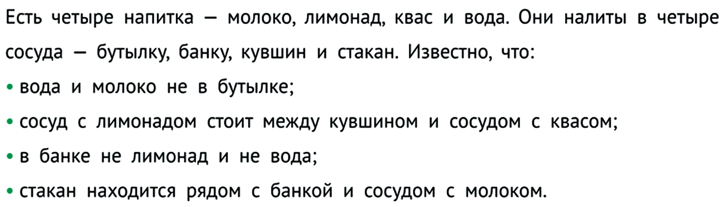 - Богомолова О.Б. Логические задачи // 4-е изд., испр. и доп. М.: БИНОМ. Лаборатория знаний, 2013. 277 с. ISBN 978-5-9963-1001-2.