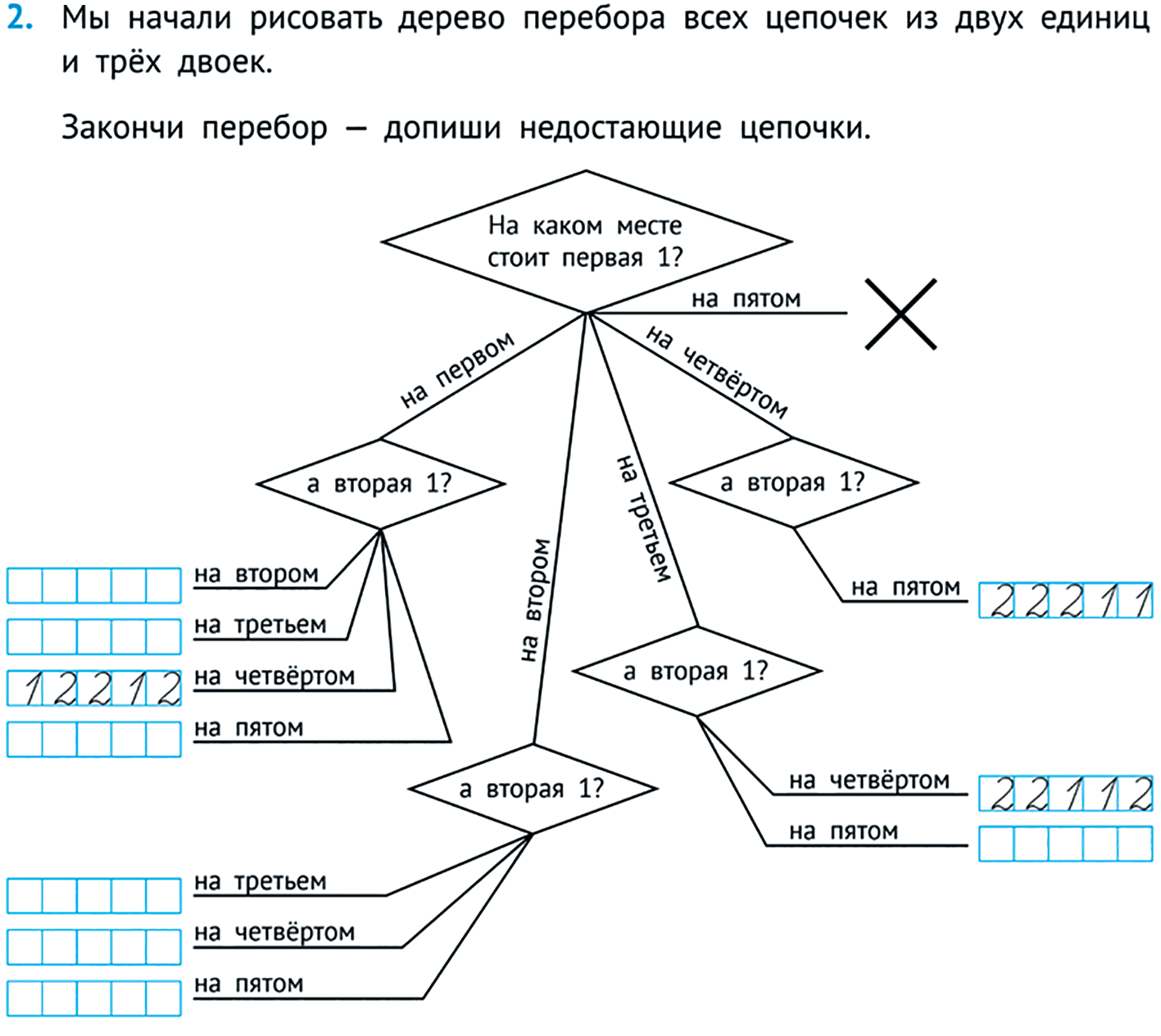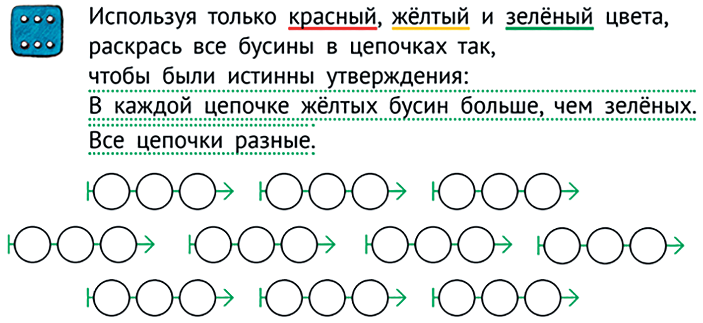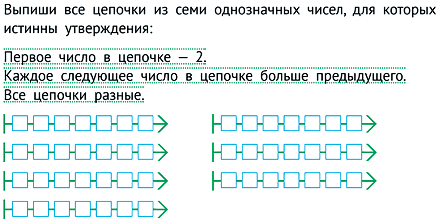 The paper is describing the class of educational problems from the course of mathematics and computer science for elementary school. This course has been implemented over the past decades by a team led by A.L. Semenov. In the problems it is required to find, build, list all objects that satisfy a certain system of conditions. The student conducts these activities in the visual world of the basic objects of discrete mathematics and computer science: strings (finite sequences of symbols), bags (multisets), tables, trees, and statements containing quantifiers. The connections of these problems with problems of computational combinatorics (“counting the number of options”), search problems of the theory of computational complexity, with “big ideas”, general cognitive strategies in their formation are considered. The content of education in our approach is more adequate to the context of the modern world.