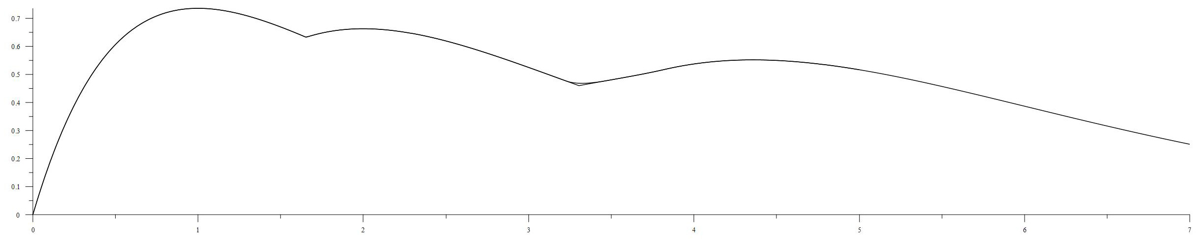 На рисунке 9 показаны кривые и Видно, что они совпадают на промежутках и Границы промежутков указаны не точно.