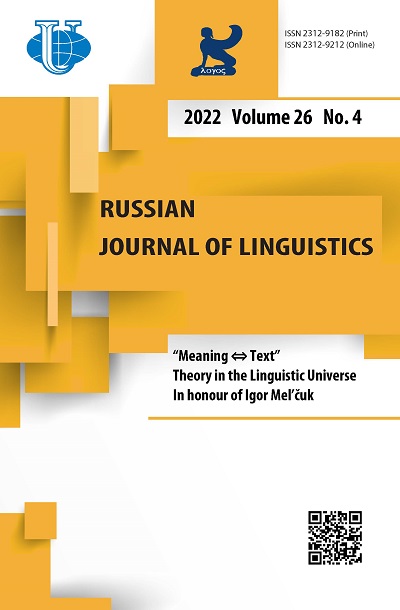- Edição: Volume 26, Nº 4 (2022): “Meaning ⇔ Text” Theory in the Linguistic Universe In honour of Igor MEL’ČUK