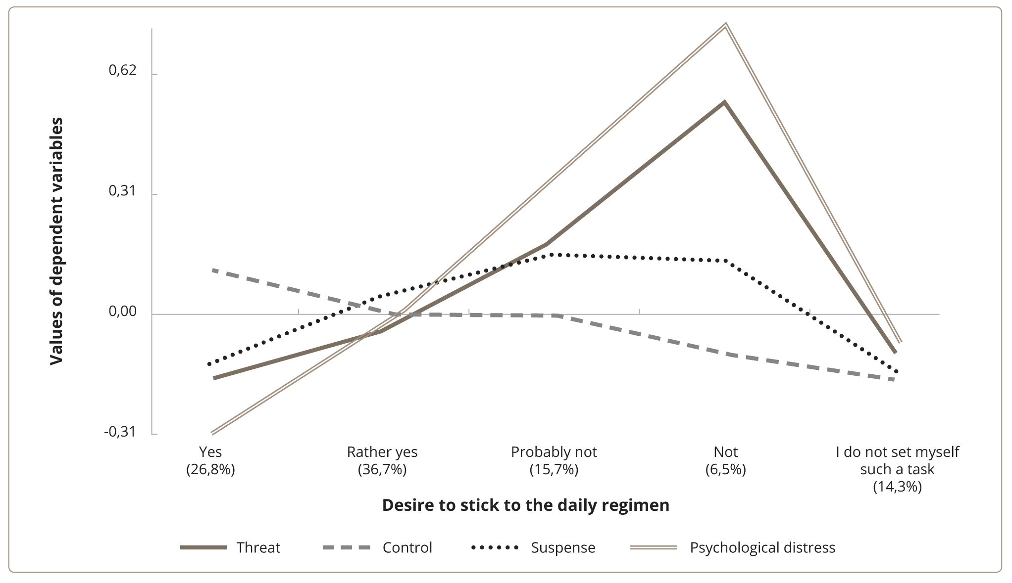 The present study showed that assessing the stressor in the form of a threat from the disease outbreak is linked to the individual choice of preventive measures, which is, in turn, important in preventing the spread of the disease. In our view, the link between threat and choice of preventive measures is similar in nature to the link between adherence to treatment and perception of the real disease.