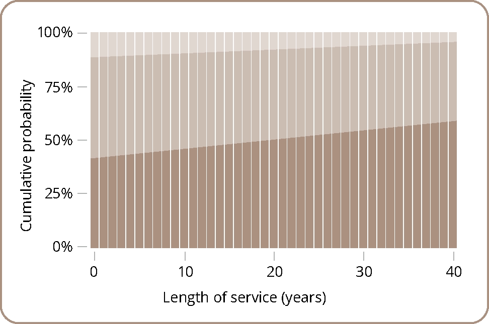 Figure 2. Probability of response depending on the length of service as a psychiatrist