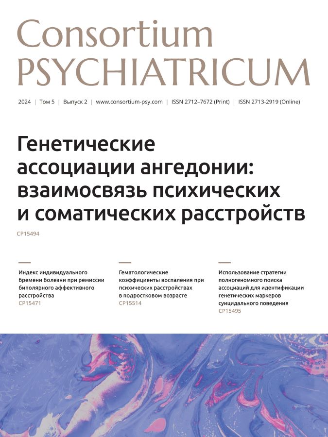 МЕТОДЫ: Проведено исследование полногеномного поиска ассоциаций ангедонии на выборке из 4 520 человек из российской неклинической популяции. Используя доступную сводную статистику, мы рассчитали шкалы полигенного риска (polygenic risk scores, PRS), чтобы исследовать генетическую связь между ангедонией и другими психиатрическими или соматическими фенотипами.