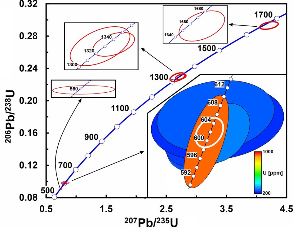 Геохронологические исследования на Европейском Северо-Востоке России были начаты в 70-е годы прошлого века и поначалу базировались исключительно на K-Ar-методе. Первый обзор 140 возрастных определений по осадочно-метаморфическим и магматическим породам Тиманского поднятия (Тимана, Тиманского кряжа, Тиманской гряды) и прилегающих территорий Мезенской и Печорской синеклиз сделан Г. Н. Акимовой (1980). На рубеже столетий предпочтение стало отдаваться результатам датирования единичных зерен циркона по отношению радиогенных изотопов свинца 207Pb/206Pb (Gee et al., 2000; Андреичев, Ларионов, 2000), которые не всегда совпадали с Rb-Sr изохронными возрастами (Андреичев, 1998; Андреичев, Литвиненко, 2007) и поэтому требовали дополнительной аргументации. В последние годы при датировании магматических, метаморфических и осадочных пород наиболее востребованным изотопным минералом-геохронометром стал циркон как наиболее устойчивый к вторичным изменениям. Современная прецизионная масс-спектрометрическая аппаратура позволяет проводить локальный изотопный анализ свинца нанограммовых и меньших содержаний в ненарушенных доменах в пределах индивидуального зерна посредством вторично-ионной масс-спектрометрии (SIMS) на ионных микрозондах SHRIMP.