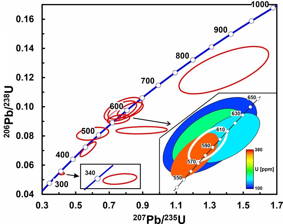 Возраст интрузивных пород фундамента Печорской синеклизы в разное время основывался на K-Ar, Rb-Sr и Pb-Pb изотопно-геохронометрических данных (Акимова, 1980; Фишман и др., 1981; Андреичев, Литвиненко, 2007; Андреичев, Ларионов, 2000; Gee et al., 2000), а в последнее десятилетие основное внимание было уделено локальным U-Pb (SIMS) изотопным анализам циркона, в результате чего современными возрастными данными были охарактеризованы магматические породы Припечорской, Печорской и Большеземельской зон (Андреичев и др., 2014а; 2017а; 2023а; 2023б; Соболева и др., 2023).