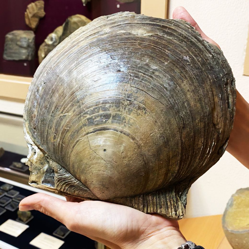 Когда на доступном для ощупывания участке дна почти все твердые предметы уже были обследованы, мои поиски всё-таки оказались вознаграждены. Однако не искомым недостающим фрагментом аммонита — он, по всей видимости, вмерз зимой в лед и был унесен куда-то вниз по реке весенним ледоходом. Очередная «каменюка», поднятая со дна, показалась на поверхности как всплывающий батискаф. Стекающая с нее вода увлекала за собой частицы илистого налета, обнажая блестящую сферически-выпуклую раковину огромного двустворчатого моллюска из отряда морских гребешков (Pectinida). Обе его створки были сомкнуты, как в прижизненном состоянии, а на их поверхности присутствовали даже остатки рогового слоя. От такой потрясающей сохранности возникало ощущение, что я держу в руках живого моллюска, а не окаменелость возрастом около 120 миллионов лет!