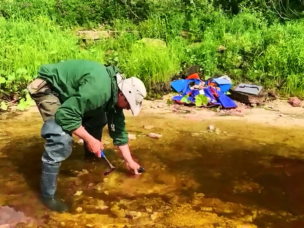 Fig. 1. Searching for plesiosaur bones at the bottom of the Ayuva River. September 2023. Photo by E. Zyablitseva