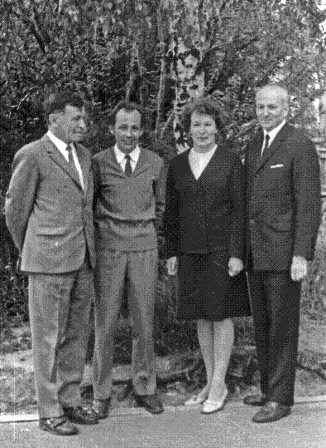 С корифеями минералогии. Слева направо: К. П. Янулов, Н. П. Юшкин, Г. А. Маркова, профессор ЛГИ Д. П. Григорьев. 1972 г.