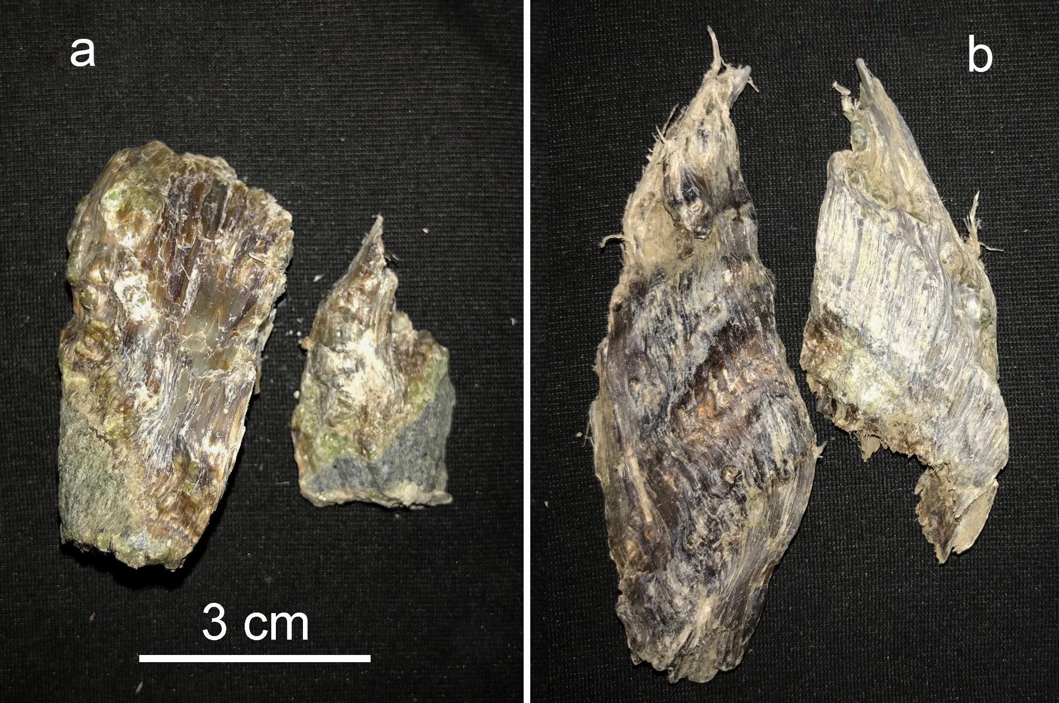 Согласно данным рентгеновской дифракции, термограммам, ИКС, ЭПР, пробы представлены серпентином с примесью граната и следовыми количествами слюд и хлорита. Весовое содержание граната в пробах РТМ-1 и РТМ-2 составляет ~10 и ~4 %. Серпентин проб относится к высокомагнезиальным разновидностям — лизардиту и хризотилу. Повышенное содержание в составе серпентинита пробы РТМ-2 железа согласуется с относительно высокими интенсивностями линий ЭПР Fe3+ в области низких полей, относящимися к замещающим ионам в структуре минерала. Термический анализ подтверждает результаты диагностики серпентинов и, кроме того, позволяет количественно рассчитать содержание его разновидностей. Установлена хризотиловая фация метаморфизма вмещающих серпентинитов.