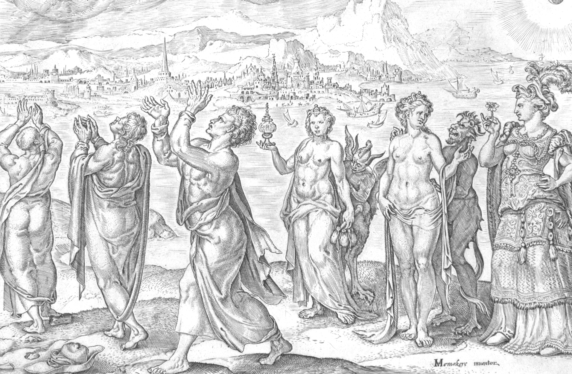 Гравюры Pater noster Библии Пискатора исполнены по рисункам Мартена ван Хемскерка (1498-1574) (ил. 3-7) – живописца и рисовальщика, автора портретов, пейзажей, картин на мифологические и библейские сюжеты [См. о нем: 10; 11]. Будучи младшим современником Микеланджело, Хемскерк вдохновлялся его искусством, сочиняя собственные композиции. В частности, как установил Аксель Л. Ромдаль, Хемскерк обращался к рисунку Микеланджело, трудясь над алтарным образом церкви Святого Лаврентия в Алкмаре [12, p. 276].