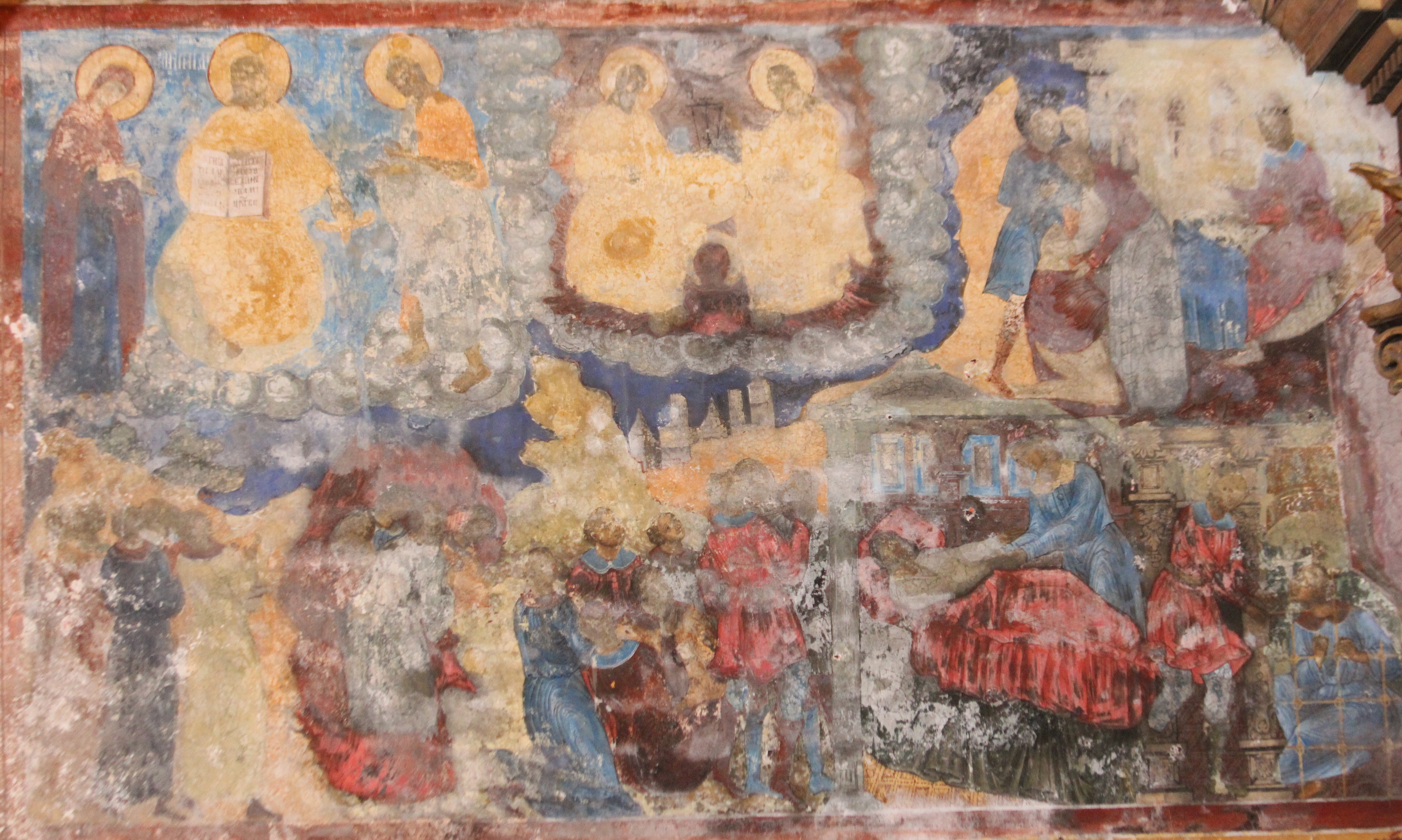 Ил. 16. Фреска из цикла «Отче наш» северной паперти церкви Спаса на Городу «Да приидет Царствие Твое». 1693 г. Съемка П.В. Западаловой