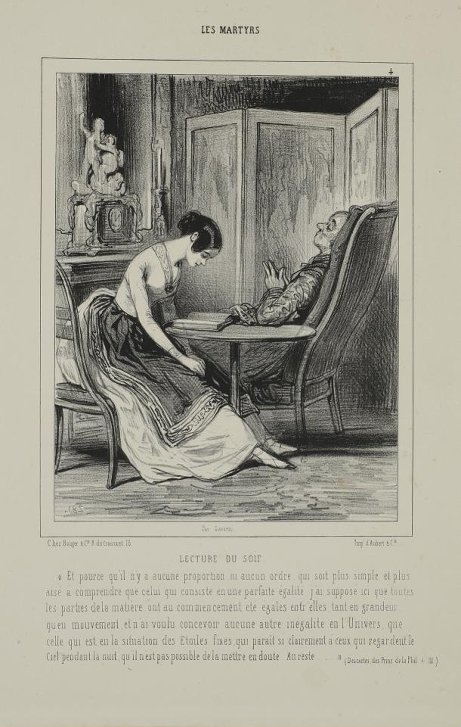 Ил. 11. Гаварни. Вечернее чтение. Литография из серии «Мученики». Лист 5. 1847. Москва. Частное собрание