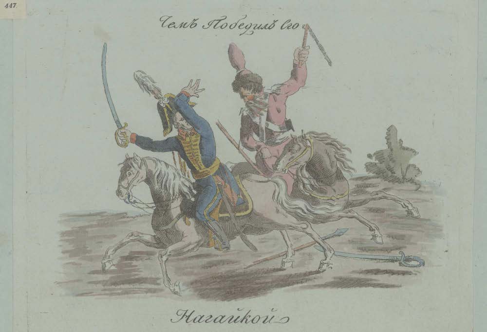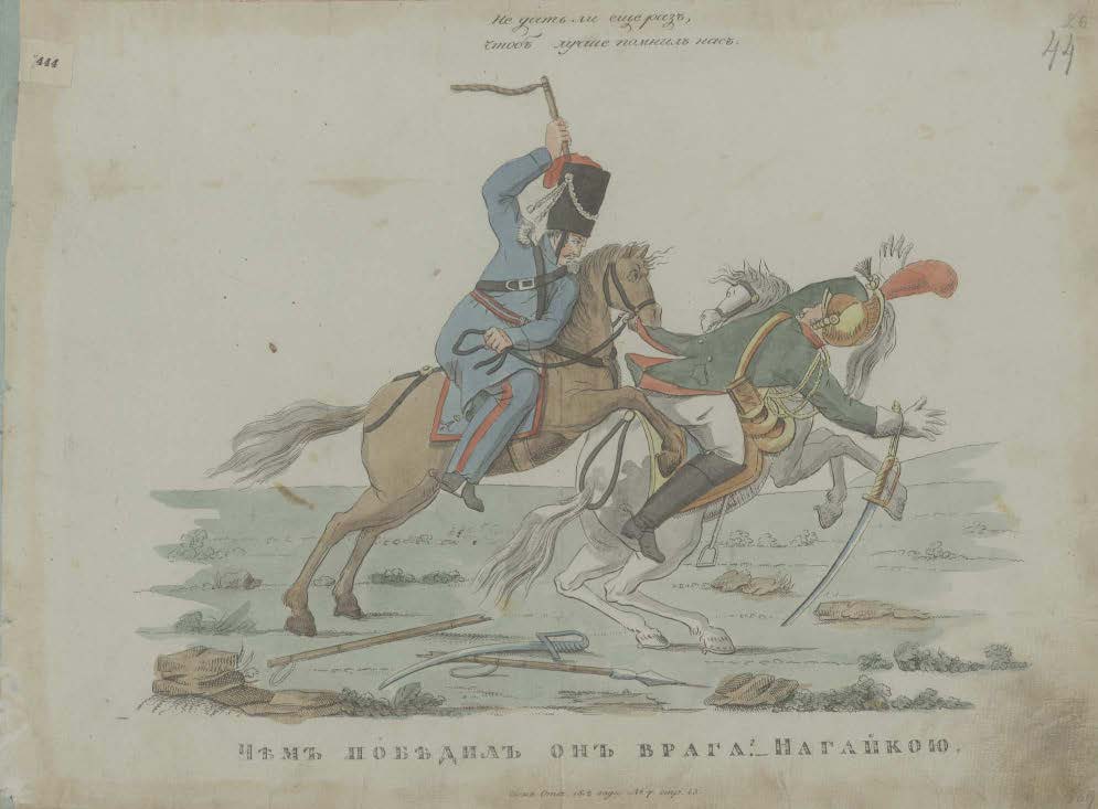 3. «Чем победил он врага? Нагайкою. Сын Отеч. 1812 г., № 7, стр. 43» (рис. 3).
