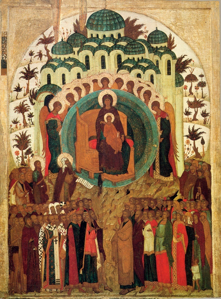 Рис. 4. Икона «О Тебе Радуется». XVI в. Дерево, темпера. 146х110. Москва. Государственная Третьяковская галерея