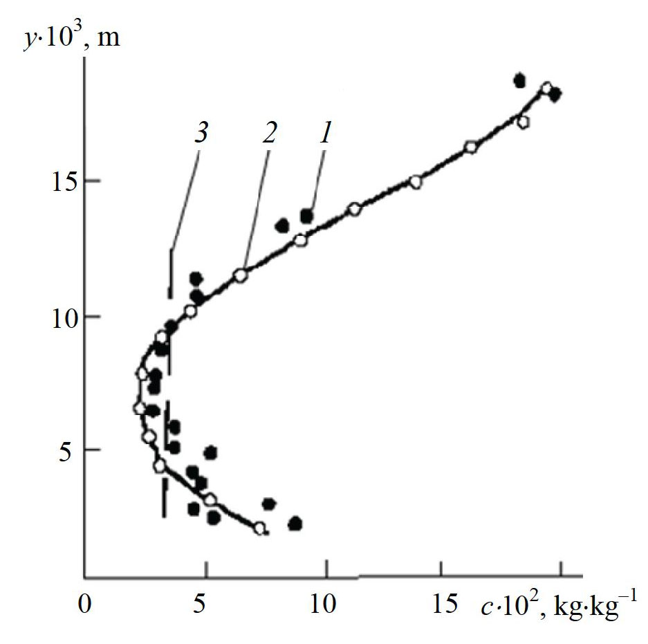 The analysis of modeling options (Fig. 5) shows that the calculation of the quasi-diffusive separation coefficient using assumption 1 () in accordance with dependence (8) does not provide adequate modeling of the concentration distribution profile.