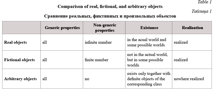 2. Table 1 Comparison of real, fictional, and arbitrary objects
