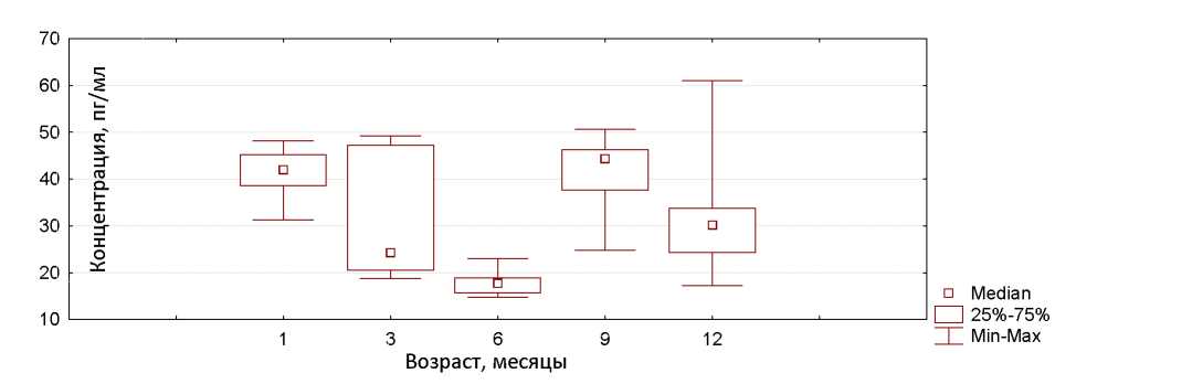 Рисунок 1. Содержание АКТГ в сыворотке крови телок разного возраста