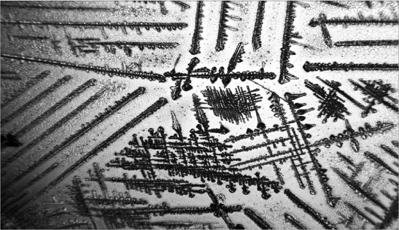 У студентов-юношей, проживающих в ХМАО-Югра, доминирующим стал IV тип микрокристаллизации (2 балла): по всему полю располагаются отдельные кристаллы в виде «прута» или «веточки» с многочисленными «почками» (рис. 4).