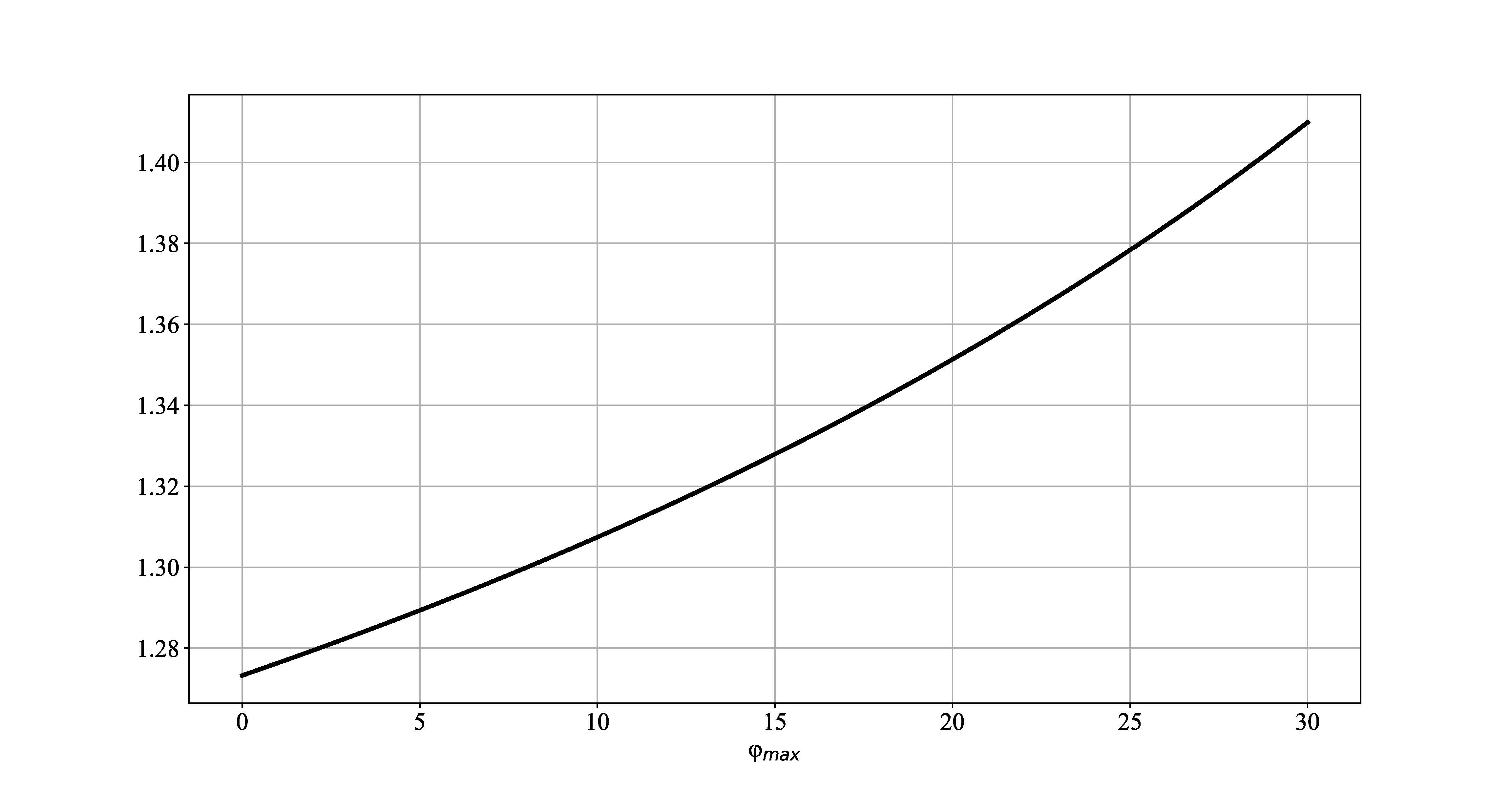Из неравенств (16) можно сделать вывод, что при наличии пропусков измерений, расположенных в некотором секторе размера , асимптотическая оценка точности восстановления компоненты скорости ветра, ортогональной биссектрисе этого сектора, не изменяется по сравнению со случаем полных данных. В то же время асимптотическая оценка точности восстановления компоненты скорости, направленной вдоль биссектрисы сектора пропущенных данных, ухудшается. График коэффициента показан на рис. 3.