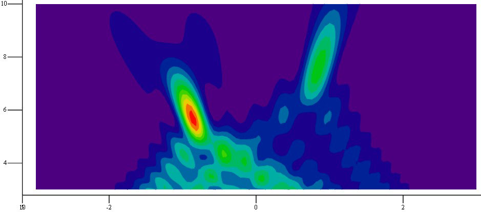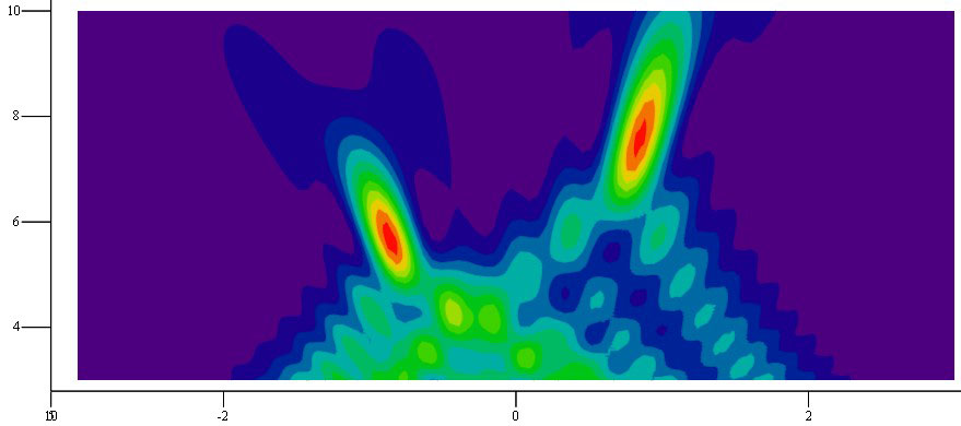 Рис. 8. Пространственное распределение энергии электромагнитного поля при ассиметричном расположении точек фокусировки