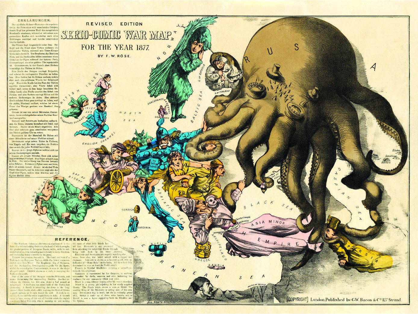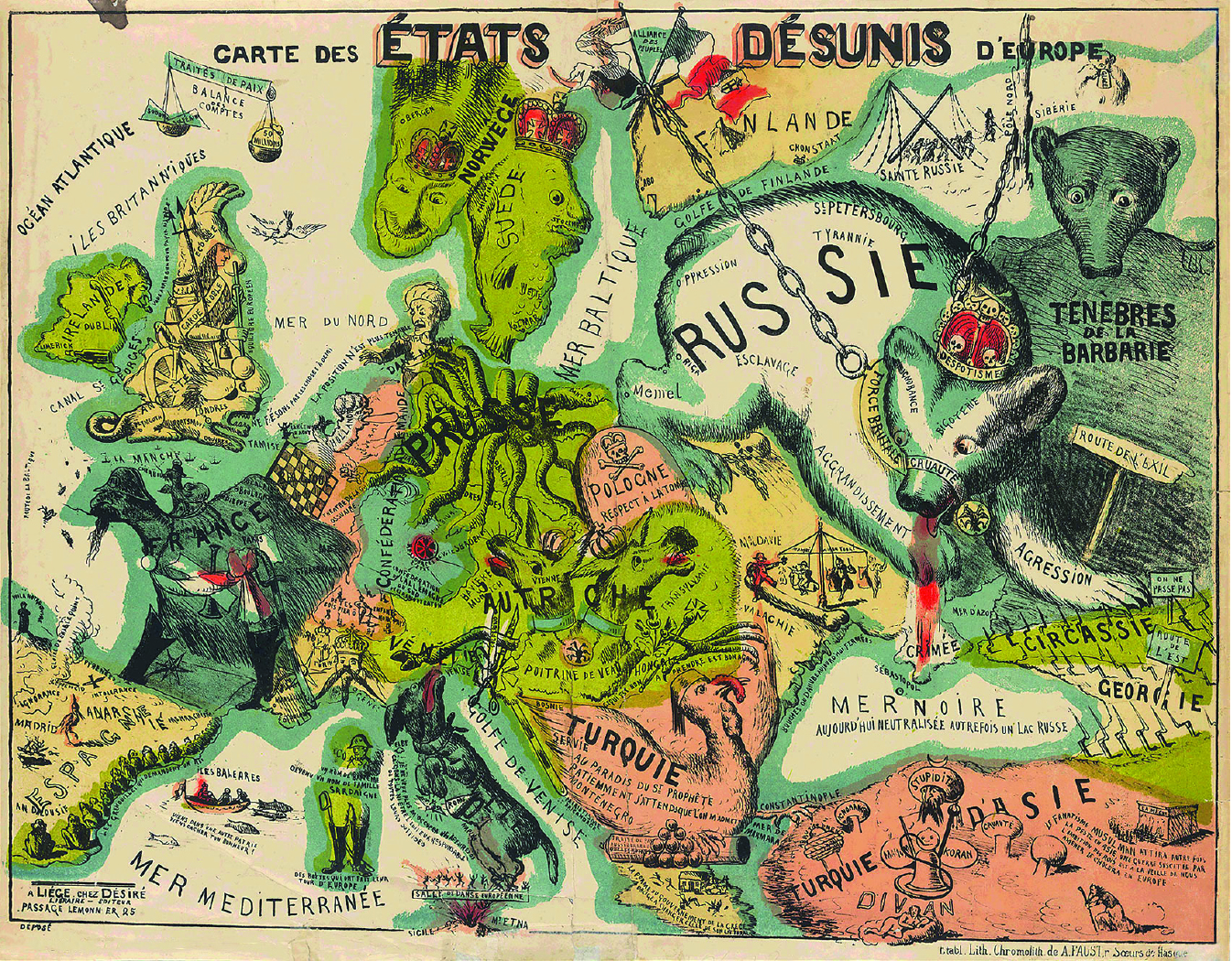 Нельзя недооценивать значение и влиятельность европейских сатирических карт XIX в. как инструмента создания и транслирования образа России. Среди создателей таких карт были действительно одарённые художники и изобретательные в своём сарказме сатирики. Их высокое мастерство не требовало поясняющих подписей – визуальные образы говорили сами за себя.