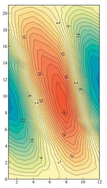 Рис. 2. Аномалии инсоляции на ВГА (Вт/м2 ) за последние 21 тыс. л. (ось ординат; 0 – настоящее время). На оси абсцисс – номера месяцев. Расчеты проведены на основе алгоритмов и программ, представленных в (Berger, 1978). Fig. 2. Anomalies of insolation on the VGA (W/m2 ) for the last 21 thousand years (y-axis; 0 is the present time). On the abscissa axis are the numbers of the months. The calculations were carried out on the basis of the algorithms and programs presented in (Berger, 1978).