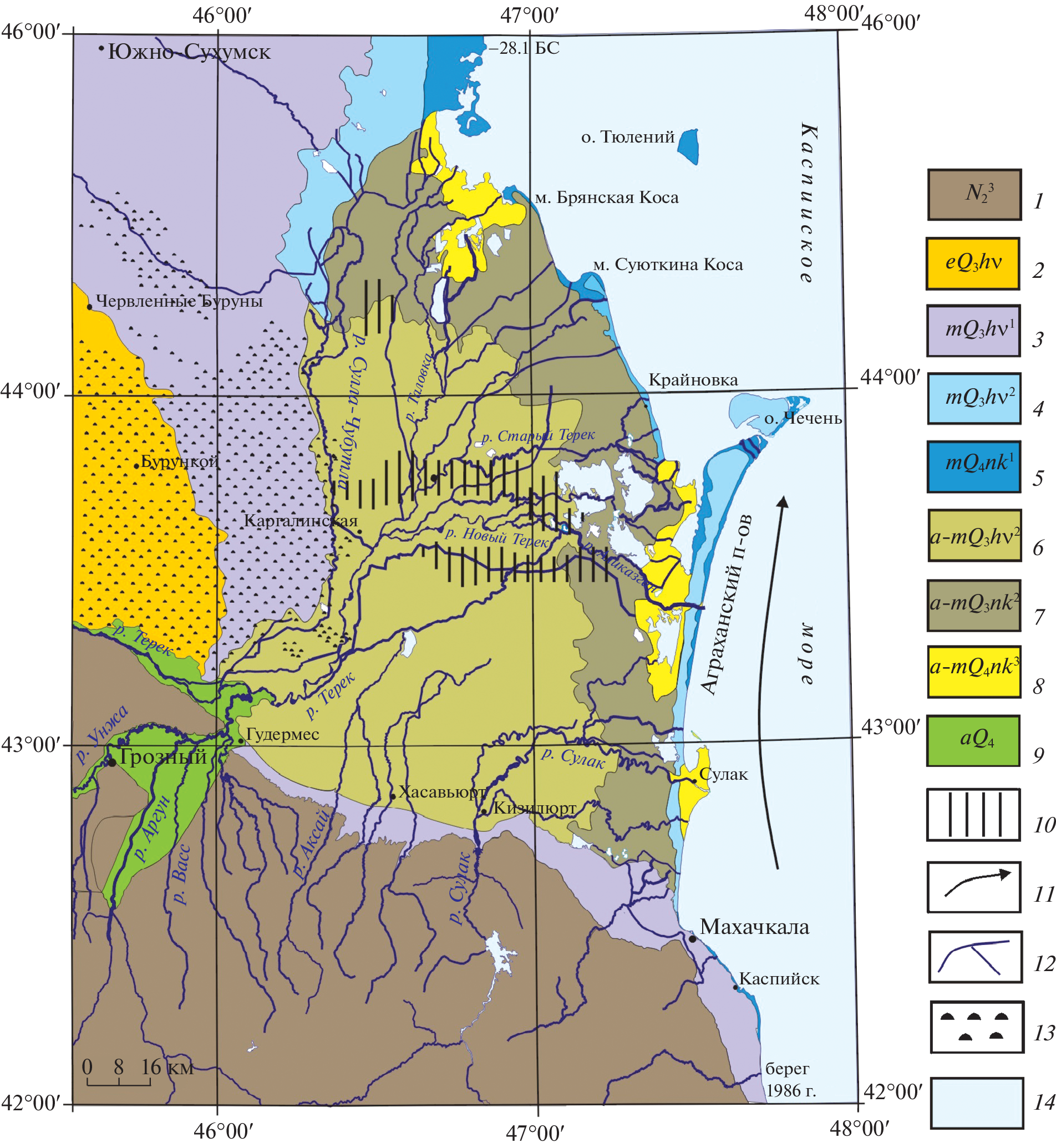 - Leont’ev O.K., Chekalina T.I. (1979). Novokaspiiskaya transgressiya i perestroika morskogo kraya Terskoi del’ty (Novokaspian transgression and restructuring of the sea area of the Terek Delta). Kompleksnye issledovaniya Kaspiiskogo morya. M.: Moscow State University Publishing House. Vol. 6. P. 3–11. (in Russ.)