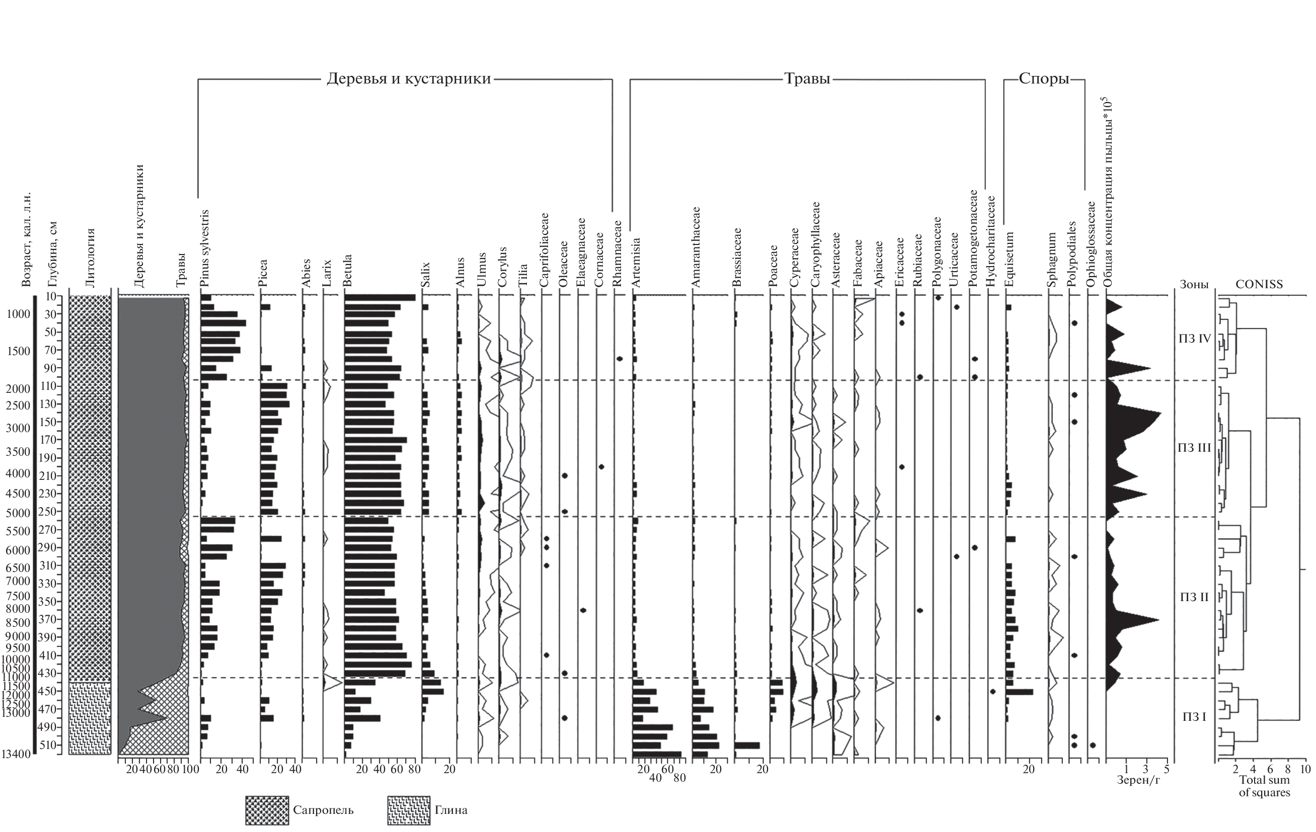 - Lapteva E.G., Zaretskaya N.E., Kosintsev P.A. et al. (2017). First Data on the Middle to Late Holocene Dynamics of Vegetation in the Upper Kama Region. Russ. J. Ecol. Vol. 48. No. 4. P. 326–334. https://doi.org/10.1134/S1067413617040099
