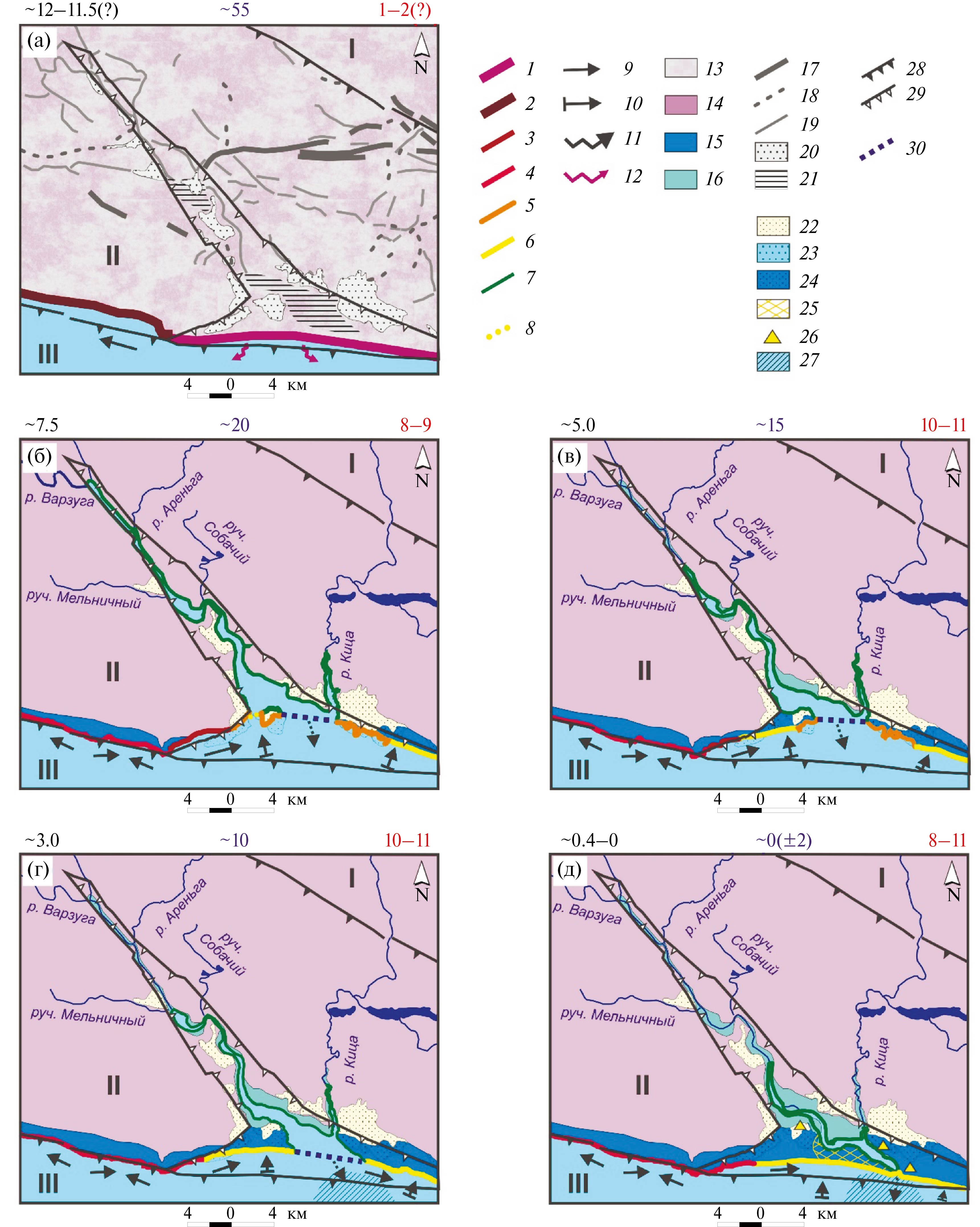 - Kolodyazhny S.Y., Baluev A.S., Zykov D.S. (2019). Structure and evolution of Belomorian-Severodvinsk shear zone in the Late Proterozoic and Phanerozoic, East-European Platform. Geotektonika. № 1. P. 62–86. (in Russ.) https://doi.org/10.31857/S0016–853X2019162–86