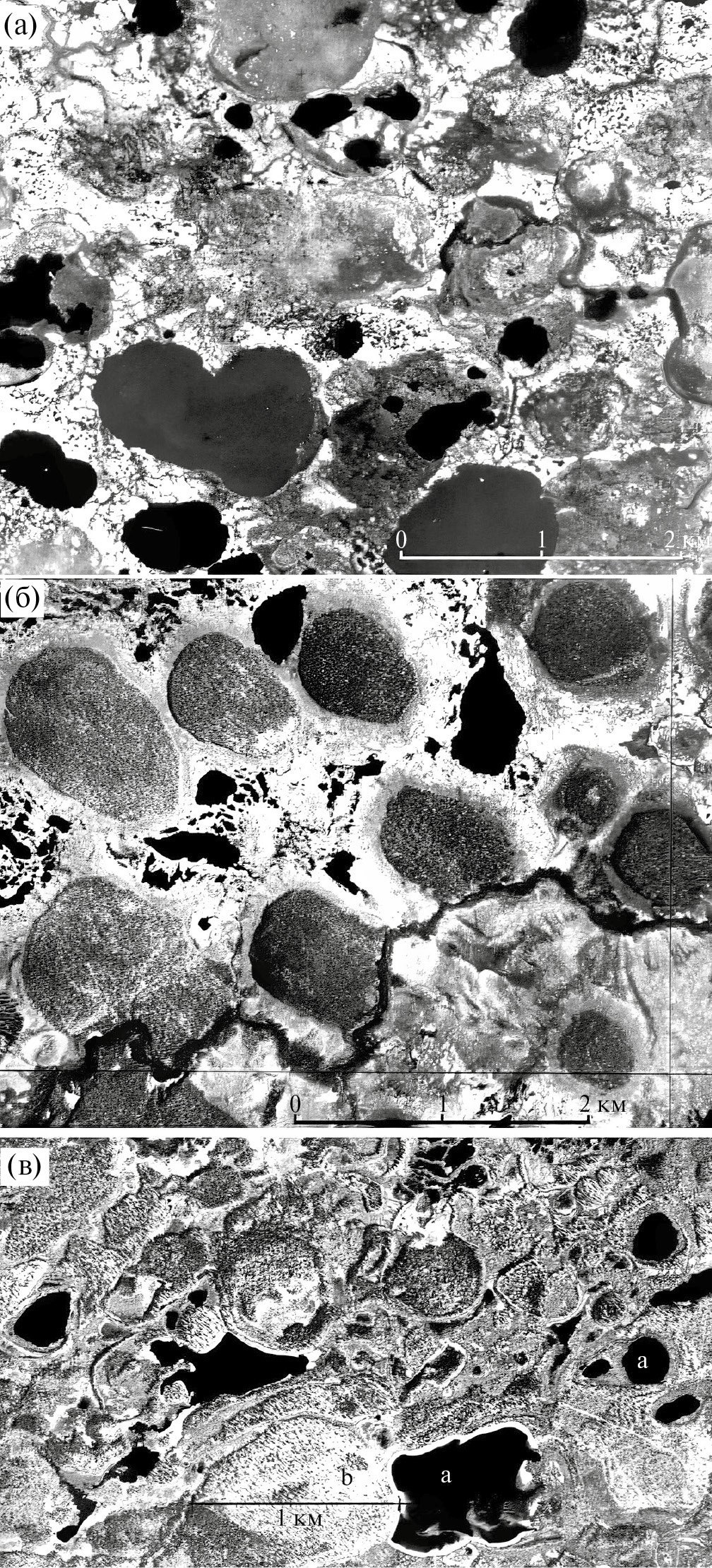 Наконец, необходимо учесть взаимоотношения лёссоидов с просадочными формами деградации многолетней мерзлоты, которые присутствуют по всей перигляциальной зоне, например, давно описанный на Русской и Западно-Сибирской равнинах западинный и полигонально-блочный микрорельеф (Бутаков, 1986). Особенно выразительны криогенные формы в северной перигляциальной зоне, где мощная мерзлота подвергалась деградации путем развития локальных поверхностных таликов, особенно термокарстовых озер (Astakhov, 1995). Широко распространен, особенно в Западной Сибири, “вырезной” ландшафт латерально мигрирующих термокарстовых озер (Заррина и др., 1961). Но самые яркие формы прежних термокарстовых озерков в виде изолированных мелкопесчаных холмов образованы инверсией рельефа в результате усадки оттаявшей многолетнемерзлой равнины. Они прекрасно видны на аэро- и космических снимках, но зачастую ошибочно принимались за ледниковые формы (Астахов, 1998).
